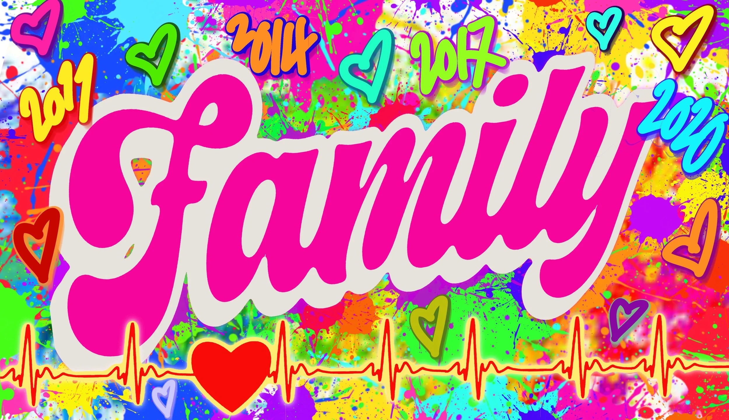 The obvious word to use for the main piece was FAMILY but Al was aware that this would need to be legible and clearly readable to all, so traditional or “wild style” graffiti lettering was not really an option here, as it would be too hard to decipher and thus not really appropriate in this instance. As such, he searched for fonts that would be suitable but that he could embellish somewhat so as to keep to the original remit of a graffiti-esque piece of art.